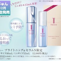メラニンの生成を抑えてシミ・ソバカスを防ぐブライトニング美容液40mLに、15mLのミニボトルが付いたお得なセットが数量限定で発売になりました。 濃縮感があるテクスチャーで角層に浸透し、乾燥によりくすんでみえる肌にもうる … 続きを読む