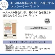 雪肌精 BLUE ベースメイクシリーズ発売記念 雪肌精 BLUE メルティ マイ カラー バランサーの限定キットを発売。 和漢植物のめぐみを贅沢に配合、1品であらゆる肌悩みに対応するコンシーラーパレット。 赤みをカバーす … 続きを読む