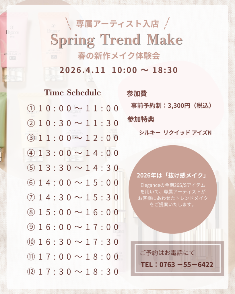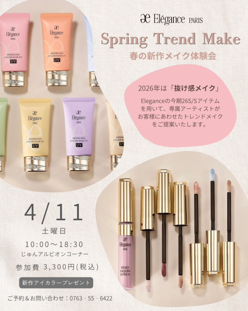 Eleganceの今期25S/Sアイテムを用いて、専属アーテイストがお客様にあわせたトレンドメイクをご提案いたします💄