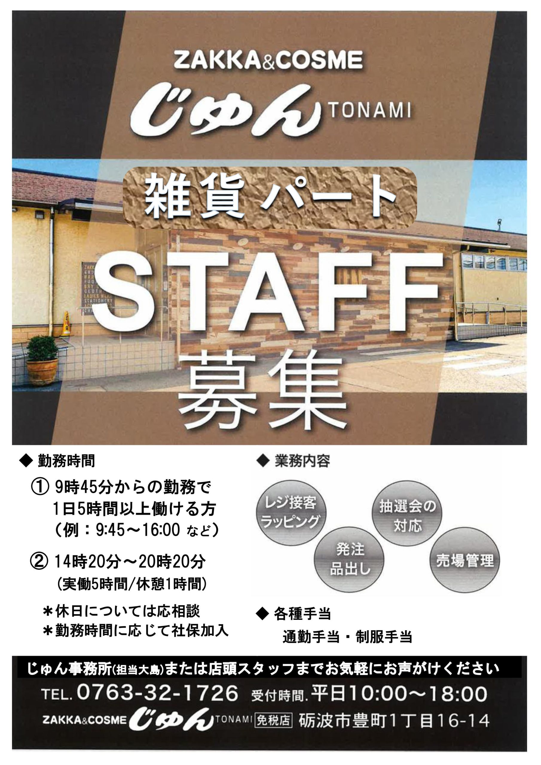 TEL 0763(32)5126 ※平日18時~20時、土日祝10時~20時 石野まで