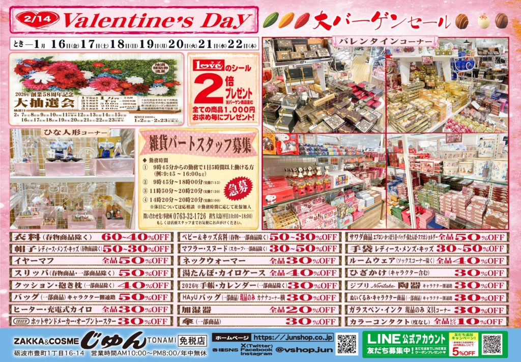 今年のバレンタインはぜひ、じゅんをご利用くださいませ💕