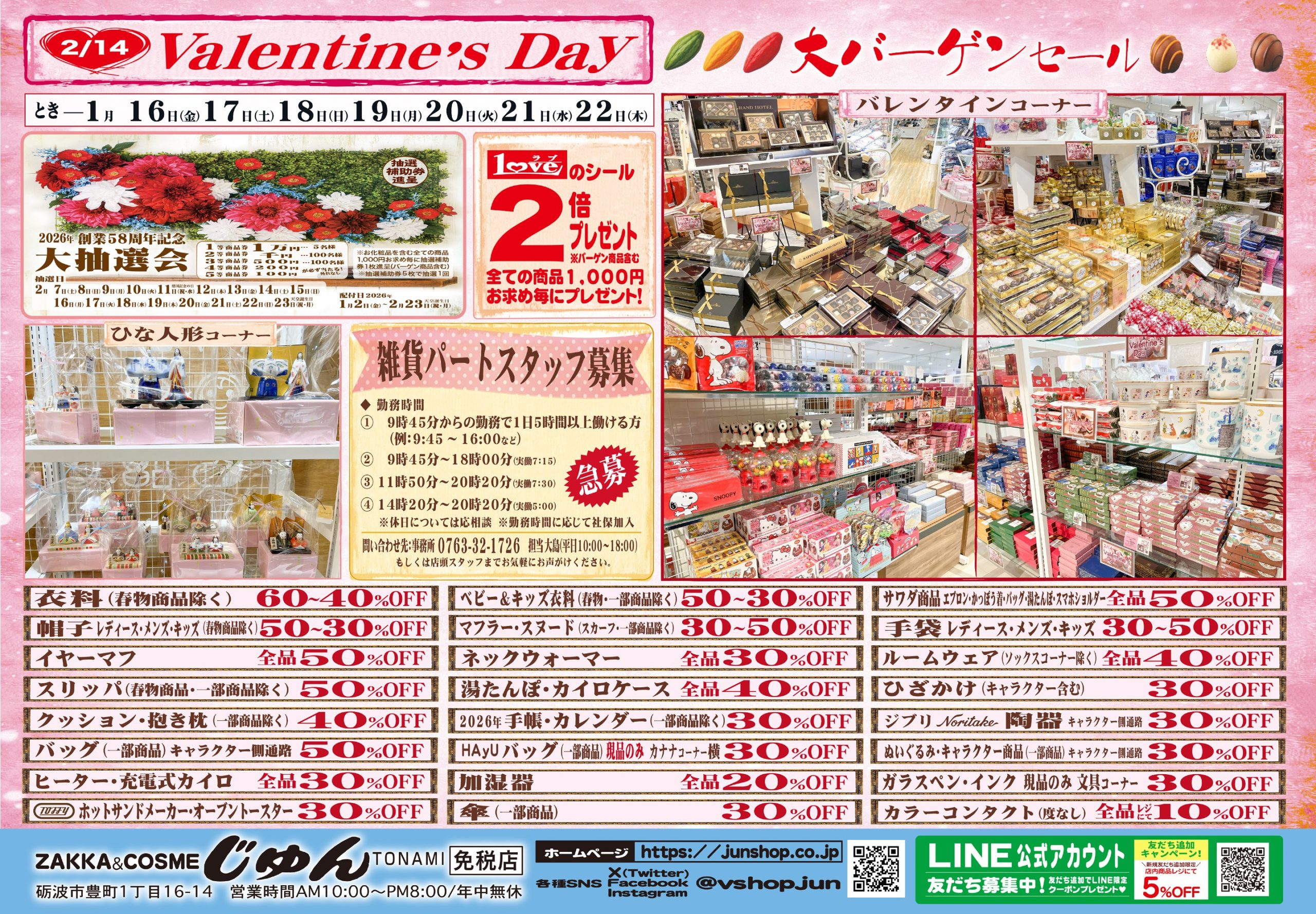 じゅん商品券が必ず当たる大変お得な抽選会となっておりますので、この機会にぜひご参加下さい♪