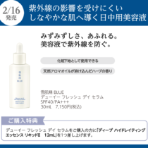 日中のくすみや肌あれ、ハリやツヤ不足など肌バテに着目した日中用美容液が新発売になりました。 軽やかでみずみずしいテクスチャーで肌に溶け込むようになじみ、つるんとなめらかなツヤ肌へみちびきます。 過酷な環境でも絶え間なく肌 … 続きを読む