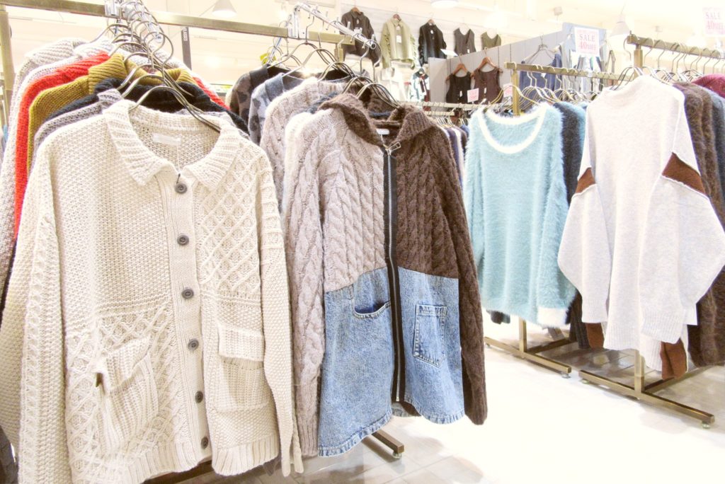 暖かなセーターやカーディガンなど、冬物衣料を色々と取り揃えております✨